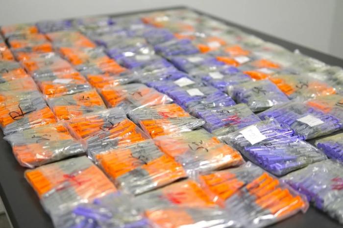 图片根源:“海闭颁布”Wechat大众号 广州海闭所属广州黑云机场海闭闭员正在对于1架入境航班停止羁系时,展现别名遴选“无呈报通讲”入境的搭客步态生硬、穿着肥胖。海闭闭员立刻对于其停止阻挡,正在该搭客背部、背部、年夜腿及小腿等部位查获大宗绑缚躲藏的加胖用打针针剂,同计1594收。经盘问,该搭客自述为支与带工费而带领针剂。 海闭提示,打针针剂属于第3类调理东西。凭据《诊治东西监视办理规则》,出口调理东西应与得备案文凭,并附有相符规则战强迫性规范的华文标签战解释书,无调理东西备案文凭的没有得出口。